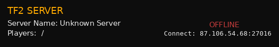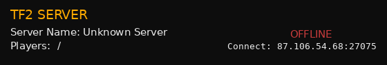 Donate87.106.110.201 87.106.54.68 Gametracker.com does not support games from the last decade so I had to start creating my own banners for this page which is why they look awful but at least they function with live player counts. https://fastdl.krawl.uk |